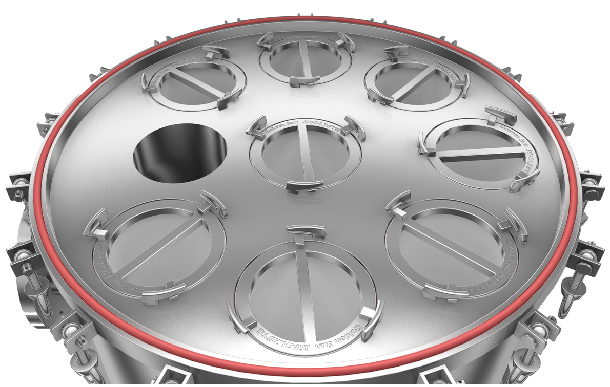 5.擰開上蓋吊帽,提起上蓋,多袋濾機需轉過一定角度。